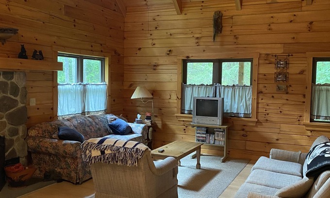 Beautiful timber and log home - our family's camp. Big open living room/dining area. Just 13 miles to State College. Kitchen fully stocked. Great for PSU football weekends! Quiet area, easy 20 min. drive to State College - great for small group of friends to relax. With three bedrooms and 2 full baths, this property sleeps 6 adults (2 Q, 2 TW) and has loft space with two small twin beds for additional sleeping option for additional 2 people. Ceiling fans in each room. Situated near two state parks and Shavers Creek Environmental Center. Note - decent cell phone service is available at the property, no wi-fi or TV service - we encourage you to come relax and unwind. The fireplace is lovely but not able to be used by guests.