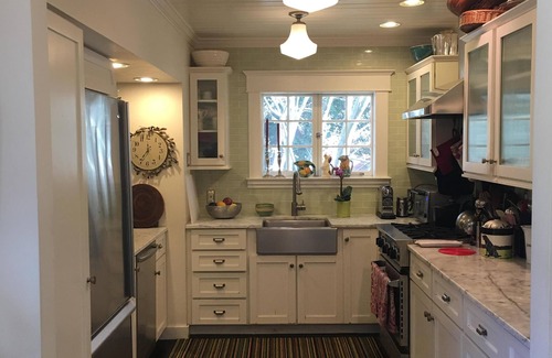 This charming house is cozy and beautifully furnished. There are all of the amenities of 5 Star living. The house is equipped with a modern kitchen with gourmet appliances, luxurious bathroom, gas fireplace, heating and AC, wifi, 2 TVs. 2 bedrooms and sleeps 4. There is a fabulous back patio with built in BBQ and dining area. Close proximity to: San Francisco, Wine Country, East Bay, and PT Reyes. Private and quiet! 1 block walking distance to market and to the town of San Anselmo. Sorry, NO PETS and NO SMOKING. More storage & closet space recently added!