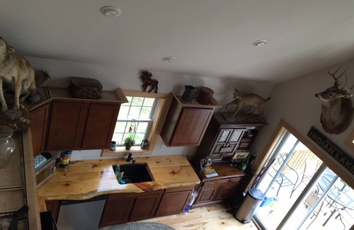 11 + secluded wooded acres with seasonal mountain views. Camp Matty is a newer cabin built in 2015 with all the conveniences of modern life. 3 bedrooms + loft (5 queens, bunk bed and a queen size sleeper sofa), 2 full size bathrooms (1 with tub and the other with a steam shower w/body jets, chromo therapy lights, and radio), kitchen, living room, family room and deck. There is a 65 inch flat screen smart tv in the living room and a 120' movie theater with surround sound in the family room hooked up to DirectTV/Apple TV along with a beautiful rustic Adirondack themed bar in the basement. There is a detached game room with dartboard, foosball table and board games for the family to suite your entertainment needs. Under the deck there is a 6 person hot tub with LED lights, multiple jets and water fall (special terms for use apply). Outdoor shower, internet, automatic standby generator, washer/dryer, dish washer, stainless steel appliances, hammock, propane grill, outdoor fireplace and the list goes on. Camp Matty is heated by radiant floor heat, a cozy wood stove in the living room and a wood pellet stove in the basement during the winter . We ask that guests bring their own sheets and towels. Blankets and pillows are provided. We can have the caretaker provide you with linens for groups traveling from a distance for an additional fee of $100. You can cross country ski or ride your snowmobile right off the property onto C-8 (the main trail which connects to Old Forge, Speculator, Newcomb and Tug Hill) which is 1,000 feet from the end of the driveway. Enjoy the local events in town such as annual 4th of July celebration, Annual Moose Festival or Rustic Wood/Antique Fair. Down hill skiing at Gore is a short 20 minutes away off route 28. The town mountain has snow tubing and an ice skating ring which is a 2 minute drive. Ride your bike 5 minutes during the warmer months to the local restaurants, ice cream parlor, movie theater, lakes or one of the white water rafting companies located right in town. 3 lakes (Adirondack, Abanakee and Indian Lake) with public beach and park within 5 minutes of the property. Scenic Indian Lake has a full service marina to rent pontoon boats, speed boats or canoes/kayaks. There are tons of hiking trails, the scenic North County Railroad in nearby North Creek and scenic paddle boat dinner cruises nearby. 15 minutes to the Adirondack Museum in Blue Mountain Lake, 45 minutes to Lake George, under an hour to Old Forge or Saranac/Lake Placid (Winter Olympics 1932&1980) High Peaks region or Saratoga (visit the race track or SPAC for a concert). ..!