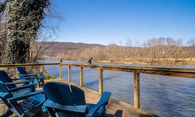 Beautiful Secluded riverfront home with double decks Firepit, Hot Tub, Kayaks | House in Shenandoah