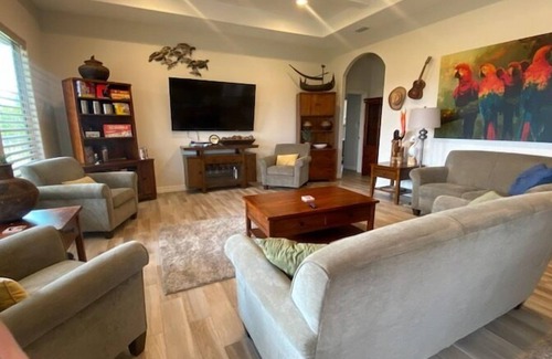 New and comfortable furniture, a smart TV, welcome casual entertainment in the living room. Modern essentials include central air-conditioning, free Wi-Fi, and a private washer/dryer. Guest have access to two swimming pools, professional PGA Golf Course (with fee access), Tennis Court, Fitness Room, and a Clubhouse. It's a quiet, relaxing and is in a gated community. Activities nearby – beach, Gulf of Mexico, fabulous restaurants, museums, shopping, dolphin watching, fishing, parasailing, shelling, bird watching, horseback riding,and wild life preserve .