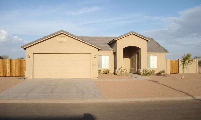 Located in the quite community of Arizona City 5 minutes off Interstate 10 half way between Phoenix and Tucson. The perfect place for star gazing in the clear Arizona night sky. Just a short distance from the 18 hole Arizona City Golf Course. Enjoy an evening stroll around Paradise Lake within walking distance. Bring your ATVs, UTVs and ride the Sawtooth Mountains with thousands of acres of desert roads and trails. Relive the old west with a visit to Old Tucson and the town of Tombstone. Come out for Baseball Spring Training. Close to sky diving, mall, restaurants and movie theater. Phoenix Zoo, botanical gardens, Tucson Desert Museum, Tucson Air Museum.This 3 bedroom 2 bath home sleeps 6. The home has an open floor plan and is decorated with southwest décor. The secluded fenced back yard has room for your RV.