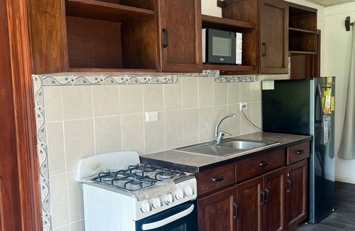 - Fully equipped kitchen: coffee maker, sink, large fridge, gas stove, microwave, cutlery, and other essential utensils