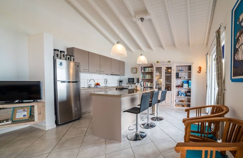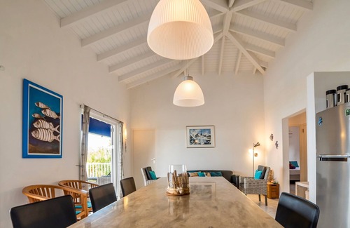 This Villa, called Villa ‘Stormvogel’ is a beautiful stand-alone villa built on the former historical plantation of Rif Saint Marie, near the village of Saint Willibrordus. It suits a maximum of six people. The villa is designed by Dutch designer Jan des Bouvrie and has a colorful tropical garden and a large living room with a fully equipped open kitchen.