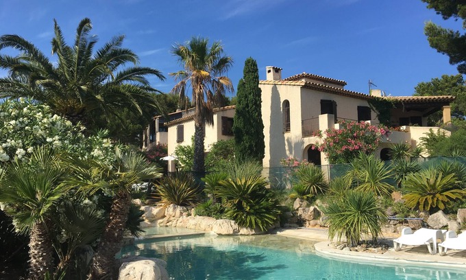 Independent studio on the ground floor of the villa. It includes 1 big room to be lived with 1 corner cooks very complete and a sofa bed, 1 corner harmed with 2 bunk beds for the children, 1 room of bath and a TOILET independent. Very nice terrace facing west with sea view. Independent access. Sea, beach and town center at 300 m. Magnificent landscaped pool accessible to our tenants. Very nice and large garden of 1500 m². Free tennis court 5 min walk from the house. Parking in closed garden.