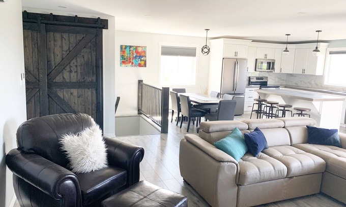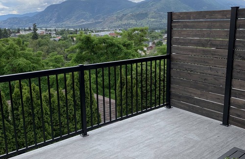 Kick back and relax in this beautiful suite with modern high end finishing throughout. Close to downtown and just steps away from the KVR trail, in the beautiful Uplands area of Penticton. BBQ on the deck with view overlooking the city. 2 spacious bedrooms with King beds and pullout couch. Walking distance to the beach, wineries, coffee shop and downtown. Washer and dryer in suite to maintain your freshness and go home with clean laundry.