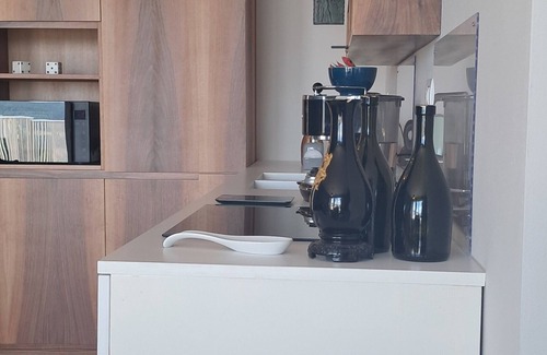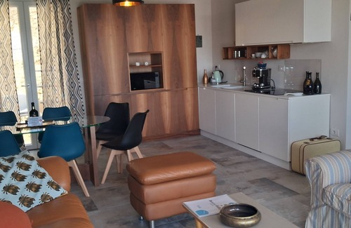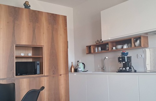 - large equipped kitchen (dishwasher, induction hob, large fridge, oven, coffee machine, dishes... . )