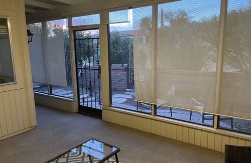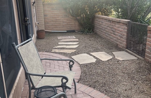 Beautiful, fully-furnished townhouse in Green Valley Desert Hills 4 community. 2 bedrooms, 2 bathrooms with a walk-in shower in the master a shower/tub combo in the guest bathroom, 1 carport space, & washer dryer in the home. Wonderful front and back patios with seating, plus a relaxing screened in porch with ceiling fan. This is a 55 and older community.