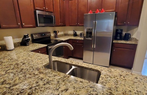 Walk-in closets keep everyone happy with lots of storage and organization. The first floor features a large living room great for parties and family hangouts. The living room has a pool out sofa, where two more guests can sleep. TV in the living room and wifi internet is included.