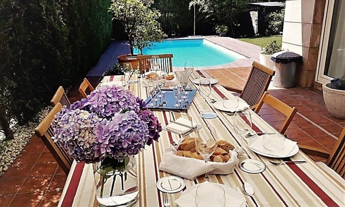 Nice 3-bedroom house with private swimming pool and 300 m2 garden in a residential area of San Sebastian, witd sports areas nearby.. 20 minutes walk distance from center. It is a three floor house with a large living-dining room, fully equipped kitchen and toilet in the goundfloor. 3 bedrooms and two bathrooms in the top floor. The main bedroom as a suite with terrace and dressing room. A very spacious living room on the base with a treadmill were you can practice san sport. In addition, there is also a bathroom in the basement floor. It is a modern and high quality house and it is equipped with high level electrical appliances. It is a very bright and comfortable house, surrounded by a large terrace, the terrace is completely furnished, giving you the opportunity to enjoy nice family or friends events, you will find a swimming pool and barbacue that will make your stay excellent. This is the best choice for family or group of friends that are looking for the comfort of a home. The whole house will be your during your stay. Residential area in Aiete neighborhood, not in the city center, but very well connected by pulic transport. It will take you only 20 minutes walking to the city center and touristic places, You will find Ondarreta and La Concha beaches 65 minutes away by car.