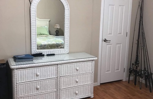 Very spacious double mobile home, built in 2014. Square footage of indoor living is 1500, 3 bedrooms, Master has a king bed and master bathroom. Bedroom #2& #3 have a queen. Sofa bed in living room. Fully equipped kitchen. All new appliances, washer and dryer inside. Slip for boat, or jet skies. Beautiful scenery day and night. Tikki area and fishing off the dock. Close to supermarkets, restaurants and stores, very well located. All utilities included.