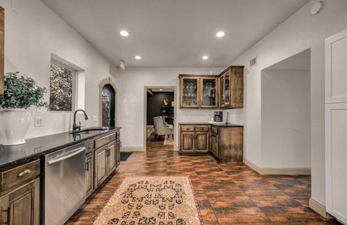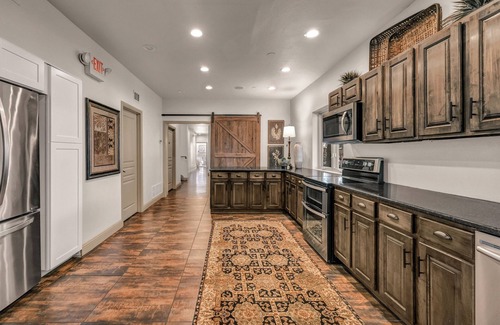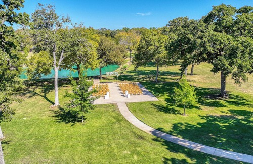 Nestled in Weatherford, this delightful estate is nestled on 13 beautiful acres of oak trees, fountains and a serene pond. The estate boasts 10 bedrooms, including a mix of king, queen, and full beds. With 4 bathrooms offering both a bathtub and shower, guests will feel right at home. A fabulous and charming retreat, this estate is a great place to call homebase while you're away. Beautifully furnished and stocked with all you will need for your stay including a chefs kitchen, laundry room, toiletries, linens and towels. Optional event ballroom space available to rent upon request.