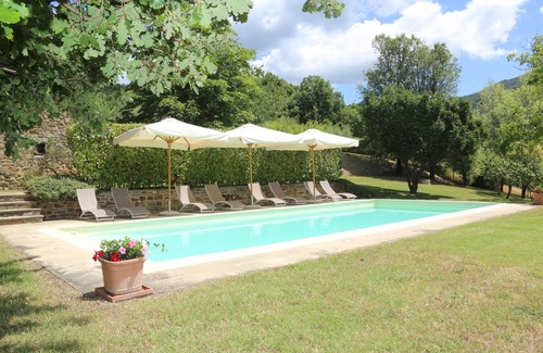Restored recently, this pristine farmhouse offers sparkling five bedroom accommodation, including four first floor bedrooms, three of which are ensuite. There is a ground floor bedroom with ensuite, and three barrel-vaulted chambers providing a stunning living area. Beamed ceilings and original floors retain the character and simple charm of this Tuscan farmhouse with plenty of natural light. The house sits on the edge of the "Alpe della Luna" or "mountains of the moon" of Tuscany and is accessed by a quiet tarmac road that leads to a network of tracks for walking into the national park in which the house sits. Excellent South facing views towards Sansepolcro (9 kms) where one can enjoy the special atmosphere of a "little Florence" with its excellent restaurants, shops, bars and of course the museum of "Piero della Francesca". There is a 5m x12m solar heated pool, olive grove, fruit trees and climbing roses. Stunning valley and hillside views all around. A first class restaurant is just a short stroll away and is open all year round. The property owners have recently added Sky satellite with over 200 channels (many in English) including Sky News, Sky Sports (original language) and Sky Cinema (original language). This hidden secret is ideal for families who can enjoy the abundant space or for singles and couples who enjoy stunning uninterrupted views, tranquility but with amenities not far away. Spotlessly clean the owners take pride in presenting this safe home for you to enjoy without any concerns.