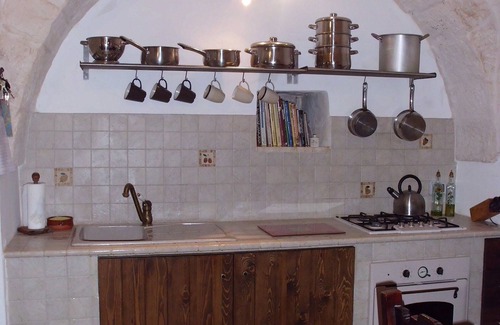 Trullo Martinese is a beautifully restored trullo previously lived in permanently by the owners as their family home and now offered for holiday rental. The spacious and homely accommodation features many original stone features throughout and comprises of a living area and open plan kitchen/dining area, large 25sqm main bedroom with king size bed and en-suite shower room, twin bedroom (can be made up as a double on request), main bathroom and utility room with washing machine. To the rear of the property is a verandah with luxurious cushioned built-in sofa and dining table and chairs, providing the perfect place for shaded al-fresco lounging and dining. To the side of the verandah is the private swimming pool of 10 x 5 metres, surrounded by mature plants and flowers. (The swimming pool is open May to October and is for the exclusive use of guests at the trullo only). Steps lead up to the roof terrace which is perfect for watching the sunset, as well as taking in the 360 degree panoramic countryside views which stretch across to Locorotondo, Cisternino and Martina Franca. The trullo sits in its own grounds of 10,000sqm and is situated on a quiet private no-through country lane amongst olive groves and vineyards. The location provides wonderful open countryside views, and is just 7km from the beautiful Baroque town of Martina Franca and stunning hilltop town of Locorotondo. The UNESCO World Heritage Site of Alberobello is just 10km away, and just a little further are the popular towns of Cisternino and Ostuni. Beautiful beaches on both the Adriatic and Ionian coasts can be reached in a 30-40 minute drive, whilst the must see towns of Matera and Lecce are both just a 75 minute drive away. The airports at Bari and Brinidisi are both roughly a 60 minute drive. The English owners live just down the road from the trullo and as such are always available for help and advice if required, such as restaurant recommendations, suggestions of places to visit etc etc, whilst of course ensuring your total and complete privacy at all times.
