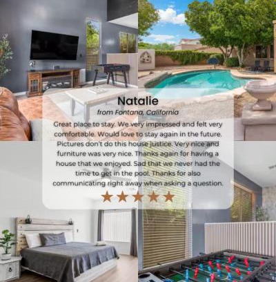 This 1 Bedroom House is suitable for tourists and travelers. It has several amenities that would guarantee your comfort. These amenities include: Air Conditioner, Pool, Security/Safety, and several others. This is a good star rated property . Coming to Goodyear and needing a place to stay? Be it for work or for leisure, consider staying at this House for your next visit, you will surely love it.
