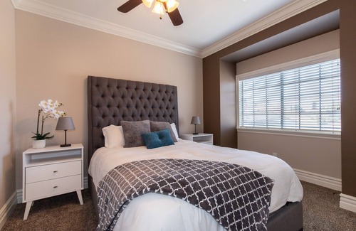 Step out and enjoy fantastic local things to do - like adorable Downtown Gilbert just minutes away, Golf, SunSplash, Gaming, Live Entertainment, and more! Or stay in and curl up on the couch and watch a movie on the 65” smart TV with a lovely fireplace ambiance. The full bar can easily be stocked with your favorite beverages. Apples to Apples or a friendly game of Trivia are a go-to for laughter and fun - we have many board games, puzzles, and books for a fun night in! Need some time to yourself? Hideaway in one of the 4 spacious bedrooms for a peaceful evening or step out onto the master suite balcony with cozy seating for two overlooking the pool, under the stars.