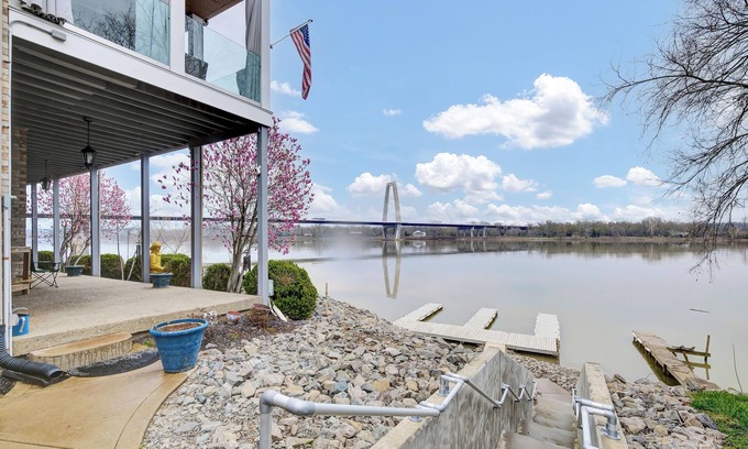 Imagine a dream getaway place that is spacious and has views overlooking the river and beautiful sunrises!! That is what you get at the RiverHouse ! This 4 bedroom, 3 1/2 bath has room for everyone to congregate together and have your own space! Bring your family and friends to enjoy the sunrises each morning overlooking the beautiful East End Bridge. There are lots of games for the kids and Pickleball across the street with a reservation. Close to Downtown Jeffersonville which is 15 minutes to get to has lots of restaurants to eat at and you can walk the Big Four Bridge. You are also15 minutes from downtown Louisville which gives you access to ballgames at Louisville Slugger Field or the Muhammed Ali museum. Churchill Downs is also an option for the ones that love horses!! Don't miss your opportunity to gather with family and friends to make memories from the RiverHouse!