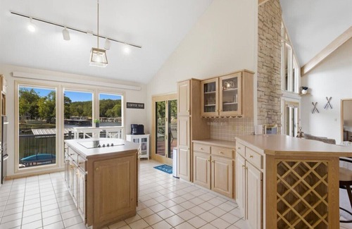 Welcome to Wolf Lakehouse, a beautiful lakefront retreat located at the 10mm in Sunrise Beach at Lake of the Ozarks. Get your family or group together and plan your stay to enjoy expansive lake views from the living areas, a great deck with outdoor seating, an indoor bar and gaming area, private dock, a swim platform, boat slip, kayaks, and a fish cleaning station. Whether you're lounging, fishing, gaming, swimming, or grilling, this property has everything you need for an amazing lake vacation!