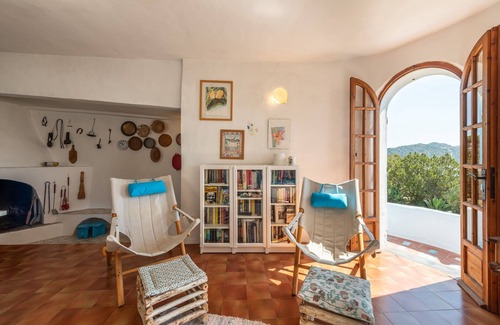 The wonderful Villa Gabriella is located in Villaggio Mandorli, Villasimius and enchants its guests with charming blue window shutters and its private access to the sea. The holiday home consists of a living room, a very well-equipped kitchen, 3 bedrooms (see below for the distribution of sleeping arrangements), 2 bathrooms. The can therefore accommodate up to 6 people. A fireplace also belongs to the amenities. In the beautiful, 2000 m² outdoor area there are 2 outdoor showers (one with cold and one with hot water), sun loungers, a balcony, terraces and a lush, green garden. Stroll around the grounds to your private rocky sea access or prepare delicious meals in the stone oven and enjoy them on one of the terraces with sea views. If you are looking for a sandy beach, the beach Spiaggia di Campus is just a short walk away (240 m). Besides fine, white sand and crystal-clear water, you will also find a restaurant there. The nearest supermarket is 1.6 km from the villa.