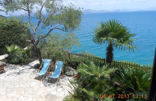 A beautiful and quiet Villa 220m2 literally steps away from the beach! Located in a small and very quiet village in southern Greece called Xiropigado. It's a two level villa with lots of windows and balconies to all the bedrooms where you can relax and enjoy the sea view from everywhere. At the ground floor there are 2 living rooms, one which has a fire place too, the kitchen, 1 bathroom and 1 king size bedroom. At the first floor there are 2 king size bedrooms and 1 bedroom with 2 single beds and a big bathroom with a tub. There is a beautiful garden all around the villa where you can find a barbecue and enough space to enjoy yourselves!