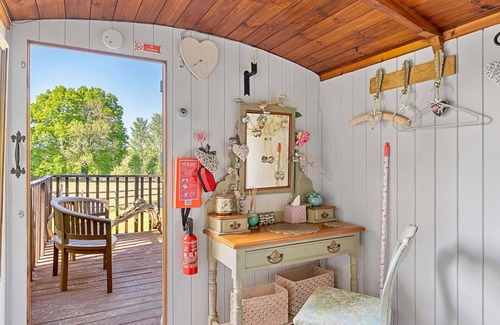 This vacation rental is called "Shepherd's Hut at Hilltop Farm". It is important to remember that only non-smokers are permitted to stay in this chalet. The maximum capacity is 4 adults, and you are allowed to bring one pet or dog with you during your stay.