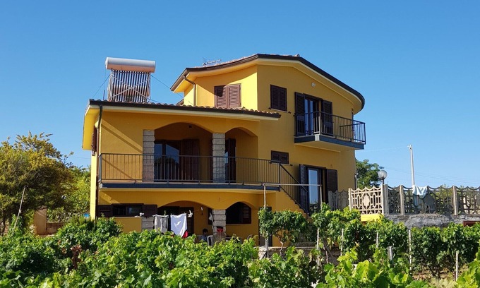 Its a beautiful Villa in the middle of a vineyard with an astonishing sea view, five minutes from the main beach of Bosamarina by car.