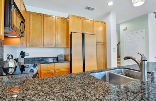 * KITCHEN has a granite bar with stools to seat 3, counter tops are all granite, upscale appliances and many kitchen accessories for you to use (Keurig, Nespresso Coffee Maker,Rice Cooker, Panini Press, Toaster, Coffee Maker, Crock Pot etc).