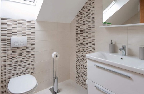 As additional content, you can use a washing machine, dryer, and iron, one separate toilet, and if you need an extra bed, there is also a corner sofa bed ideal for two people. If children come with you, a feeder and a baby cot are at your disposal.