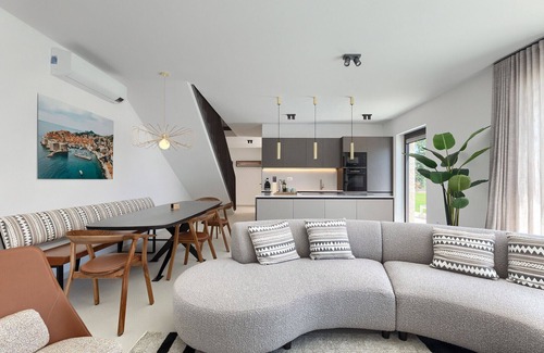Villa Vegt is located in the village of Kaštelir near Poreč. This modern villa has 4 bedrooms and can accommodate up to 10 people who will certainly enjoy everything it has to offer. The villa has a heated swimming pool surrounded by a spacious garden, making it an ideal place for a holiday throughout the year. Free parking is also available at the villa.