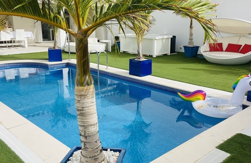 BEAUTIFUL VILLA with heated pool in Maspalomas 3rd Bed room with supplement is located in Sonnenland. BEAUTIFUL VILLA with heated pool in Maspalomas 3rd Bed room with supplement provides accommodation, featuring Air Conditioner, TV, Fireplace/Heating, among other amenities. This House features Air Conditioner, TV, Fireplace/Heating, to make your stay a comfortable one.