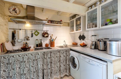 This marvelous country house is situated in a private garden (1500 m²) containing olive and chestnut trees. There is a spacious terrace with pleasant views of the surrounding countryside. The large swimming pool (4x8m) is perfect for taking a cooling dip during the hot summer months and features a shaded terrace where you can lay back and relax in the chairs and sun loungers. To top it off there is an outdoor Jacuzzi to unwind at the end of the day.