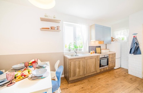 This accommodation is furnished with style and attention to detail. It is fully equipped, air conditioned and ideal for families. On the ground floor of the villa there is an entrance to the dining room with big kitchen, living room and bathroom. From there you have access to a covered terrace swimming pool, garden and grill. The master bedroom and second bedroom as well as the bathroom are located on the first floor. Enjoy your private garden with barbecue. Take a dip in the private outdoor pool. Parking is provided on the property of the house.