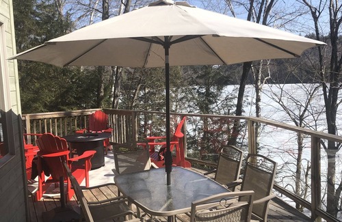 We have a natural fire pit by the lake, with 6 Muskoka chairs surrounding it. On the upper deck of the cottage (steps from the kitchen and family room), we also have a propane fire pit which also has 6 Muskoka chairs surrounding it.