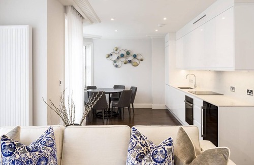 This large three double bedroom apartment is situated on the third floor of a recently refurbished Victorian red brick mansion block which benefits from three en-suite bathrooms and ample storage and living space. A modern living area with large flat screen TV and fast WIFI makes this space enjoyable for a family and an open plan bespoke kitchen with integrated Neff and BOSCH appliances and utensils. There is a separate guest WC featuring under-floor heating a heated towel rail.