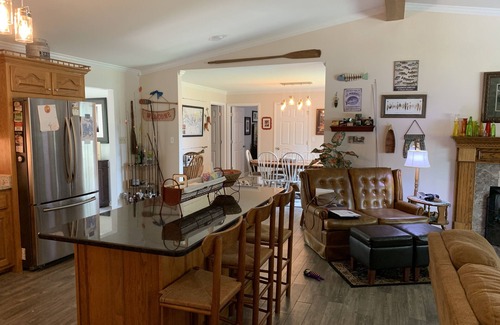 Home is immaculate and just waiting for your family or group! Dining room, main living area and kitchen are all open floor concept with plenty of room for lots of impromptu gatherings. The covered back deck runs the length of the house and provides lots of seating plus a table at one end where you can eat or play cards while you enjoy the waterfront views. It also includes a porch swing at the other end for those quiet moments.