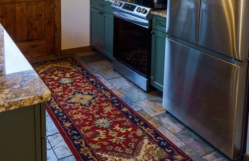 On the main floor, in addition to the living areas, there are 3 bedrooms - 2 with queen beds and one with 2 twins. There are 2 full bathrooms, one with a tub/shower combo and double sinks and the other with a shower. On the lower level there is a large rec room (with a ping pong table, an art/work station, two sofas and a TV as well as a wood burning fireplace). There is also a separate bunk room with 2 custom bunk bed sets (4 twin beds). There is a laundry room on the lower level.