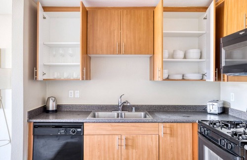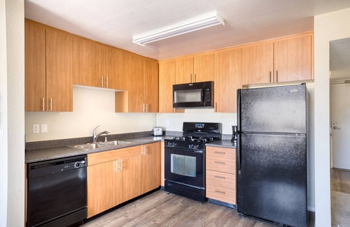 This furnished apartment is located in Woodland Hills, an upscale neighborhood in Los Angeles’ San Fernando Valley region. A short commute to downtown LA, this area is great spot for nature-lovers and hikers thanks to its location close to the Santa Monica Mountains and numerous green spaces, including Warner Center Park. From high-end steakhouses to international cuisine, Woodland Hills has a dynamic dining scene, with many restaurants boasting gorgeous views as well. It’s a paradise for shoppers too, highlighted by Westfield Topanga & The Village, a gigantic shopping mall frequented by celebrities. While Woodland Hills is walkable and serviced by multiple bus lines, most residents rely on cars to get around.