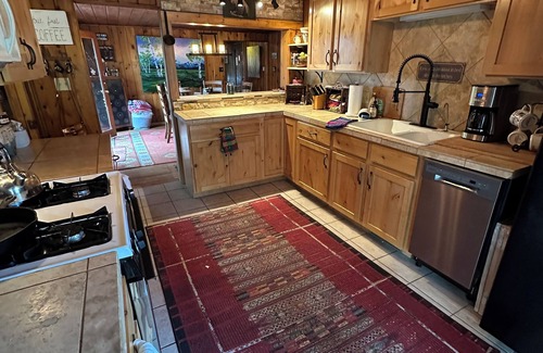 Also, there is a separate residence also on this property; however, it is on the other side of the creek, with views blocked by trees to ensure your privacy while on vacation. Both cabins share the spacious driveway.