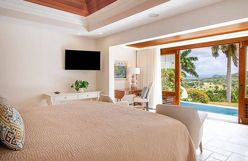 Bee Happy is the newest 2 bedroom villa on resort and has recently been renovated from top to bottom, it offers absolutely spectacular views of the Caribbean sea and the evening lights of the city from its 67 foot, comfortably furnished veranda, with a private plunge pool and outdoor shower.