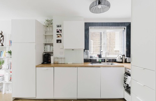 Designed to be both stylish and functional, this kitchen is a chef's haven and is fully equipped with all you could need! Featuring wooden countertops, modern white cabinetry, and gorgeous wooden floors, these features all come together to create a contemporary space. With state-of-the-art appliances including a fridge, freezer, oven, hob, coffee machine, and dishwasher - what more could you need? From pots and pans to utensils, cutting boards, and serving dishes, everything has been thought of. Whether you’re whipping up a quick snack or hosting a dinner, the kitchen is a joy to use. There is also a washing machine, so you can complete the house chores easily before heading out for a day exploring! Within the space, take a seat at the round dining table with two wooden seats that comfortably seat all guests, ideal for enjoying a homemade meal together. The layout is perfect for both relaxation and socialising, with seamless flow and plenty of room to spread out.
