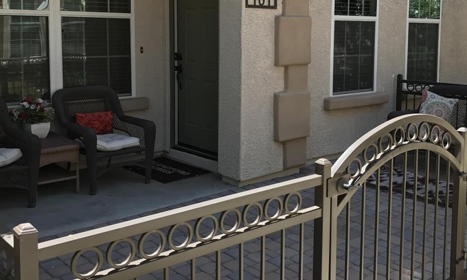 3 bedroom 2 1/2 bath condo in Gilbert AZ. Minutes from Allegiant airport located in Mesa AZ. Beautifully furnished. Master bedroom has king size bed with master bath with double sinks, walk in closet, and separate toilet. 2nd and 3rd bedrooms have queen beds. 2nd full bathroom located on upper level. Great neighborhood including access to all amenities including pool access. Beautifully furnished. BBQ onsite. Great shopping and access to all the wonders Arizona has to offer. 2 car attached garage