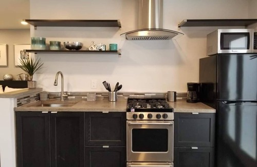Immaculate newly renovated dream guest house in the heart of North Hollywood just minutes away from Universal Studios, Burbank Airport and the NoHo Arts District. Easy freeway access to anywhere in LA. Huge shopping center and a Planet Fitness gym one block away. Also a brand new outdoor mall called NoHo west within walking distance. Our space features a full kitchen with oven, 55" flat screen TV with streaming services, wifi, laundry area and a large private fenced in patio with a barbeque.