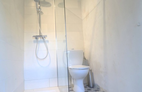There is also 1 bedroom with bunk beds for children, and another office-library room, next to the master bedroom, just under the roof with 2 single beds. From this room you can access the small terrace on the roof with a beautiful 360 degree view across the vineyards and Roussillon village.