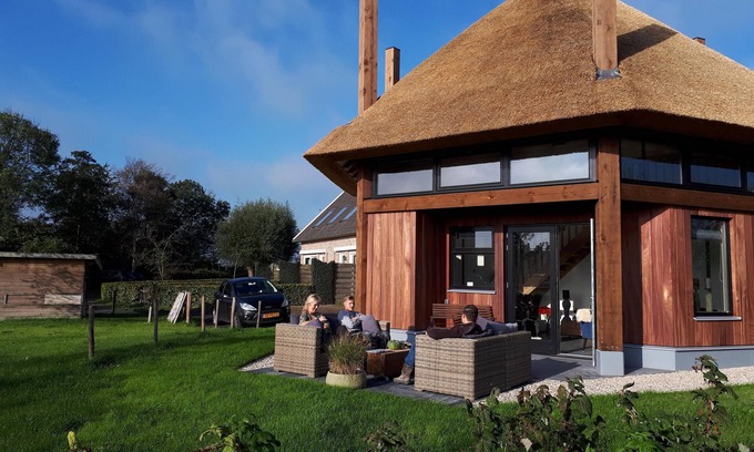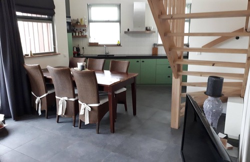 From this house on the back of the plot you can enjoy far views over meadows with lots of birds, Cows and sheep. The livingroom feels airy and roomy because of the big open space to the roof. Costs nor effort has been saved on materials and style. Smart TV incl Netflix in the livingroom.
