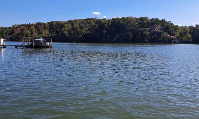 families or groups that enjoy a peaceful stay near the water. The 2-story Lakehouse has 5 beds, 2 full bathrooms, 2 living areas, and every room has a lakeview. With a private dock on Wilson Lake, you can enjoy more than soaking in the scenic view with swimming, fishing, kayaking, and boating.while your boat can be put it at the nearby Marina and roped right where you stay.