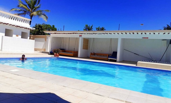 Yes, this Diani Beach villa has a swimming pool. Check the Facility Overview section for details about the pool and other available facilities.