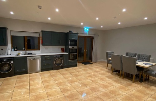 Sleek modern town house with spacious rooms available to rent individually for short or long term stays, or option to rent the whole house. Large communal kitchen with the option to call into the restaurant or cafe next door if you dont fancy cooking. Large communal sitting room with a 60 inch smart tv and an insert stove for those winter evenings. Free parking at the back and front of the house, with free wifi internet. All power showers with instant hot water from the gas central heating system. 6 bedrooms to choose from, with 4 rooms en-suite and 2 rooms sharing a very large family bathroom with shower and bath,(ROOM 1 AND ROOM 4), large bathroom on the ground floor off the hall. Also the option to rent the entire house for larger groups or families, birthday parties, hen weekends etc.
