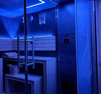 Food & DrinkTea/Coffee maker, Bottle of waterBathroomShower, Bathtub, Spa tub, Toilet, Body soap, Slippers, Shampoo, Shower cap, Towels, Bathtub or shower, Free toiletries, Private bathroom, Bathrobe, Toilet paper, Hairdryer, BidetMedia & TechnologyFlat-screen TV, Streaming service (like Netflix), TVGeneralCarbon monoxide detector, Air conditioning, Smoke Alarm, Fire extinguisher, HeatingKitchenWine glasses, Refrigerator, Dining table, Electric kettle, Coffee machineActivitiesSaunaBedroomWardrobe or closet, Linens |