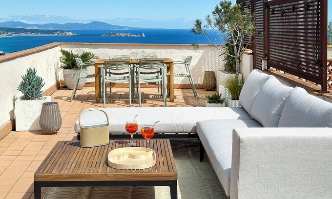 Enjoy the best sunset in the Empordà with a 30 m2 terrace overlooking Sa Riera and the Bay of Pals, the Medes Islands and even the Pyrenees, enjoying a glass of Empordà wine from the sofa or the solarium. This is a design apartment that combines the original spirit of Begur, the best design classics in the world of Barcelona, with a minimalist contemporary taste. In the attic there are 2 bedrooms on the second floor and 2 fully equipped bathrooms, perfect for a couple with children. The kitchen is fully equipped with a Nespresso coffee machine, toaster, kettle, dishwasher, etc. If you have guests and after a good dinner under the stars, you can offer them a designer sofa bed that will help you find another 2 people. Although Begur has the most famous beaches on the Costa Brava, you may want to stay home for a while. Then you can use the fully equipped community pool overlooking the complex. A place to read while tanning ... or feel the refreshing and clear tone of Begur. And all the best; This unique tranquility is just 3 minutes walk from the center of Begur, full of life and all services, restaurants, cafes and shops.