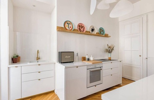 Located on the 3rd floor of a beautiful building, the apartment is accessible by elevator, making access easy, even with luggage. The building has a secure intercom for peace of mind.